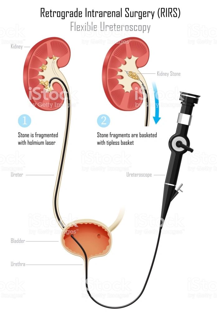 RIRS may be done to remove a stone. The stone is seen through the scope and can then be manipulated or evaporated by a laser probe or grabbed by small forceps, etc.